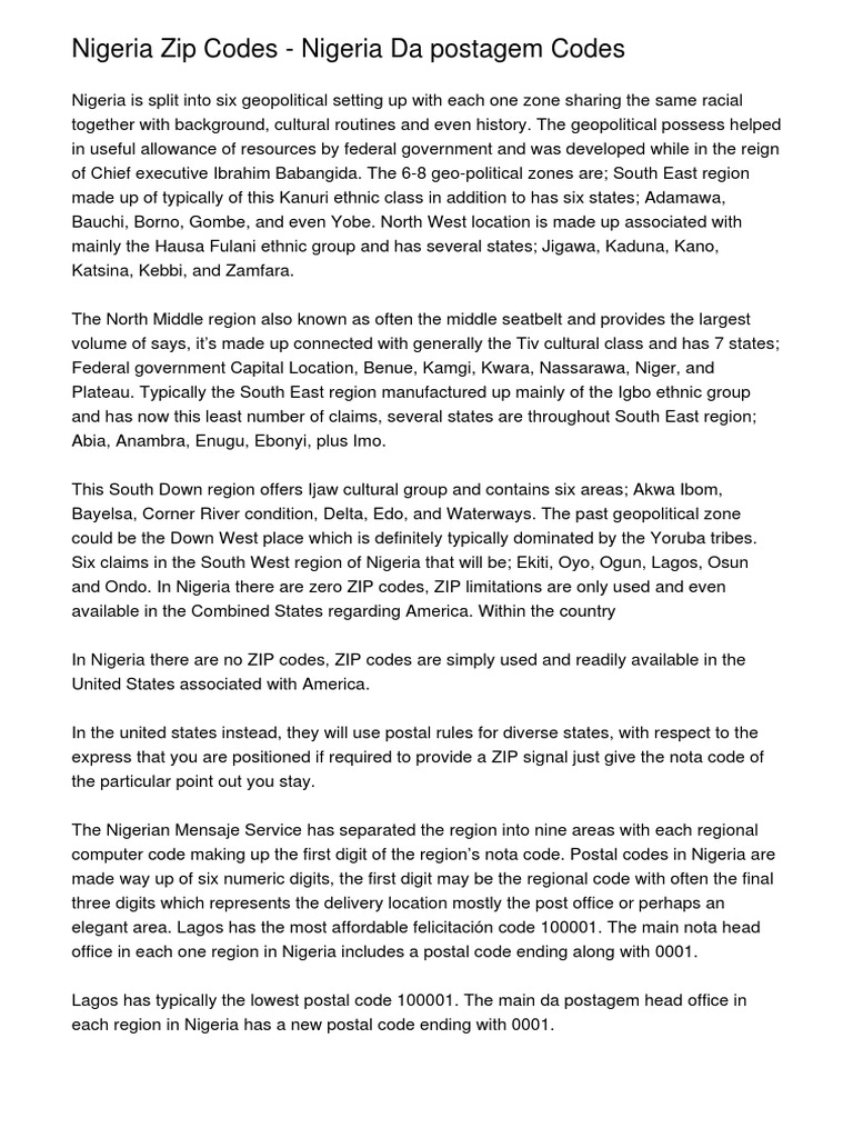 It covers an area of 356,669 sq mi. Today, zip codes are almost a prerequisite for getting any letter, parcel, or postcard delivered to your address. Apr 26, 2021 · the first postal codes appeared in london in 1857, when the city was divided into 10 districts. Benin city is the capital of edo state, nigeria.it has several districts/wards which make use of a wide range of postal or zip codes. Lying approximately on longitude 20 42'e and 32 2'e respectively, and between latitude 60 22'n and 60 2'n, lagos state is bounded in the north and east by the ogun state of nigeria, in the west by the republic of benin, and stretches over 180 kilometers along the guinea coast of the.